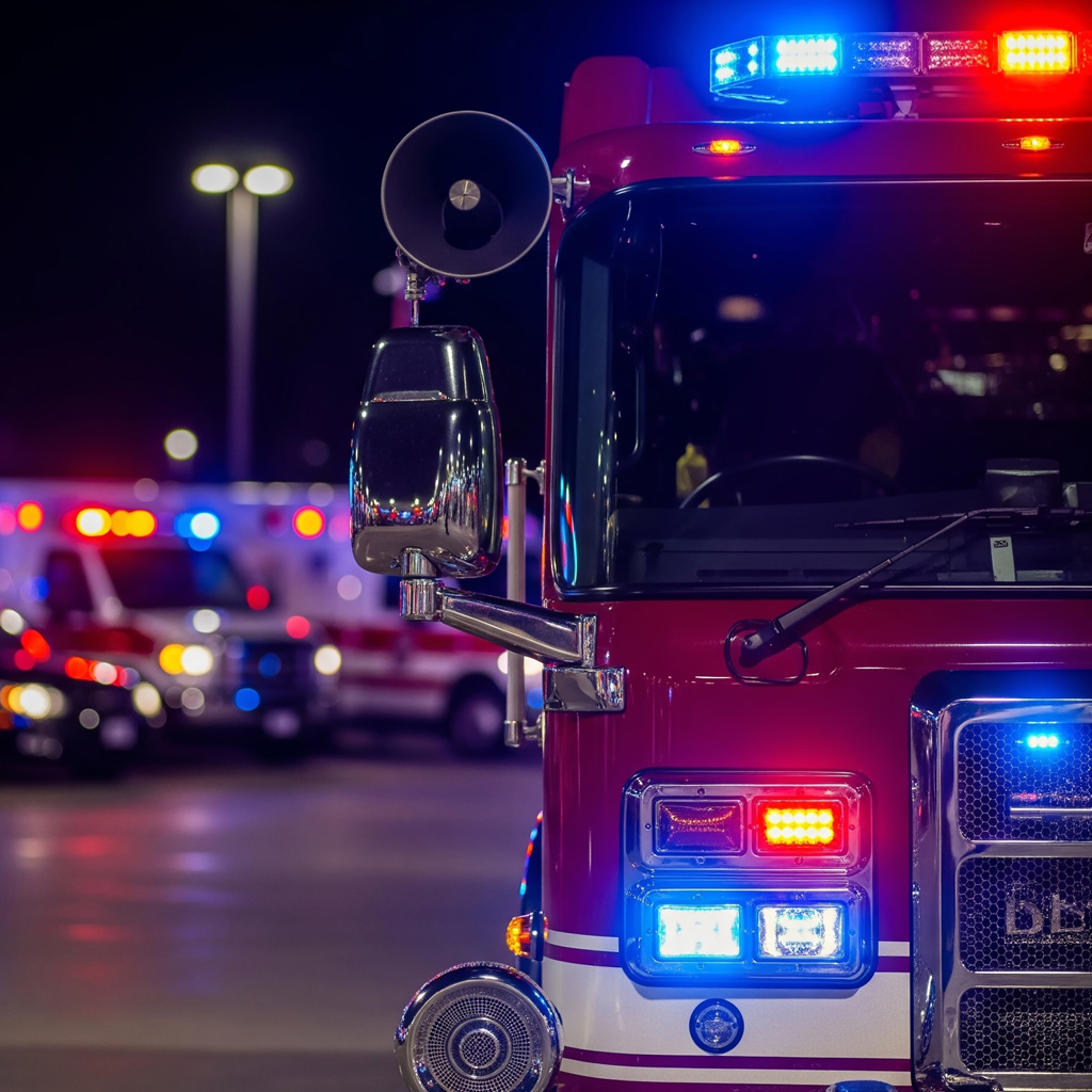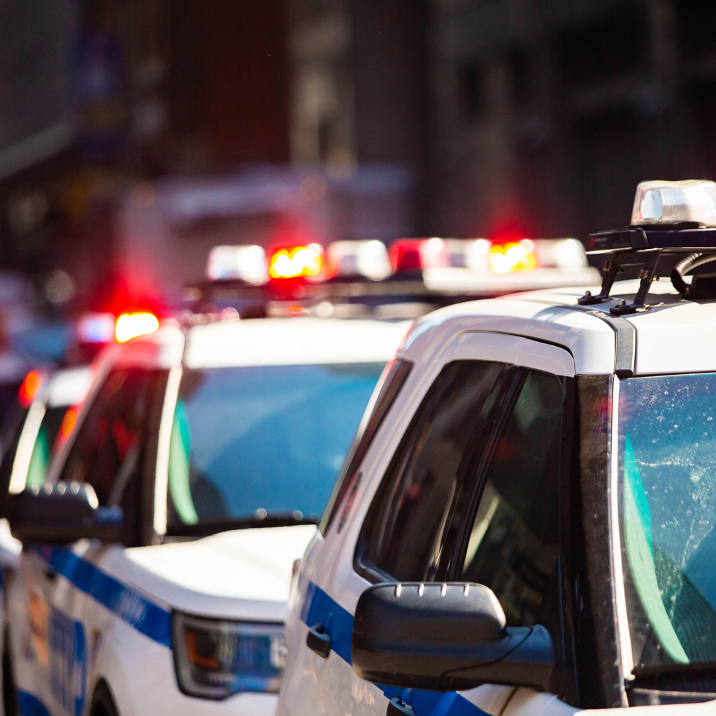 Law enforcement fleet maintenance includes routine service of patrol vehicles and specialty units. Power tools assist technicians with wheel, brake, and mechanical repairs.